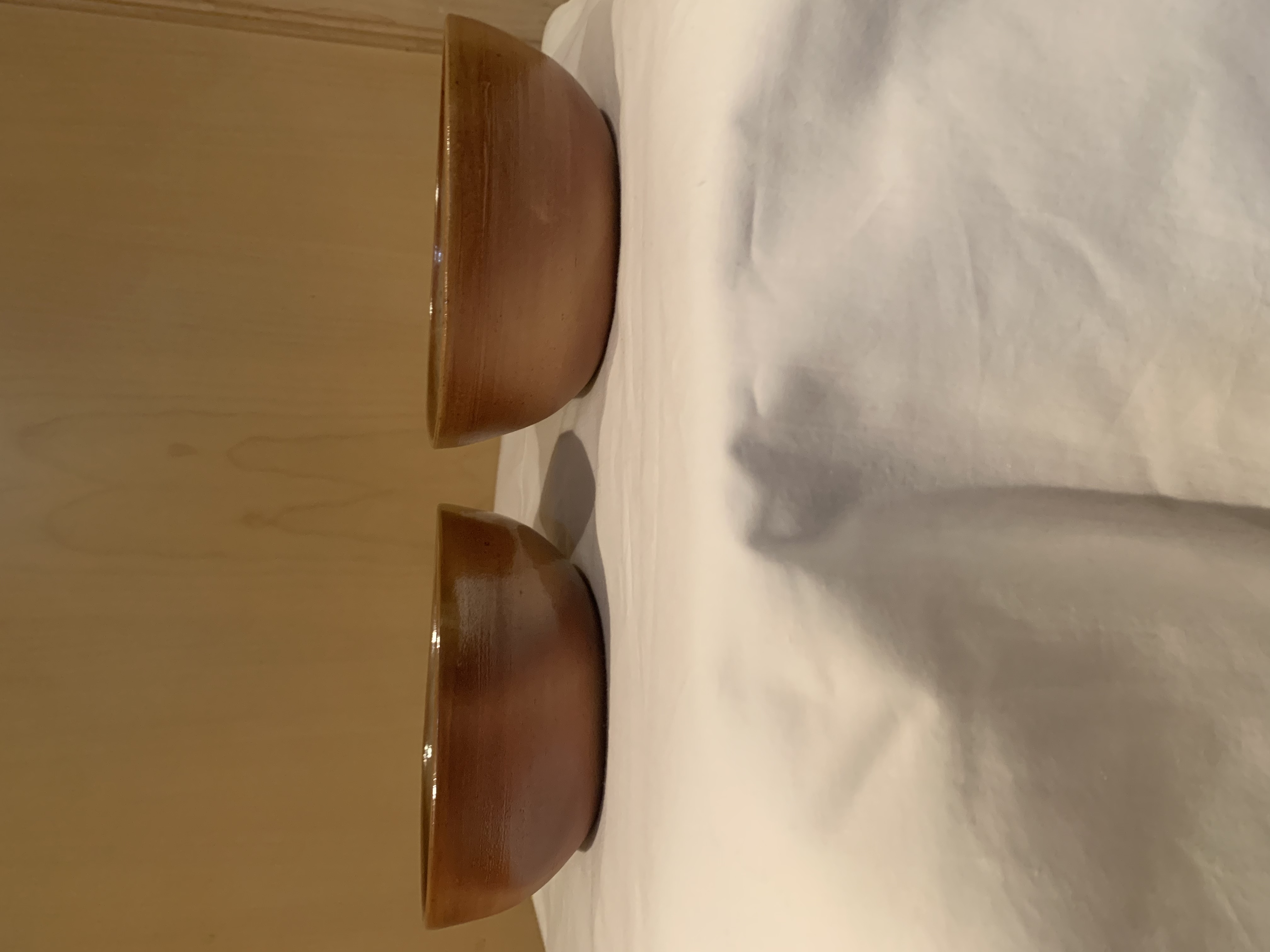 2 Wood-fired bowls with inside beige glazed, 5-1/4”x2” andd 5”x2”. Food, Dishwasher & Microwave safe